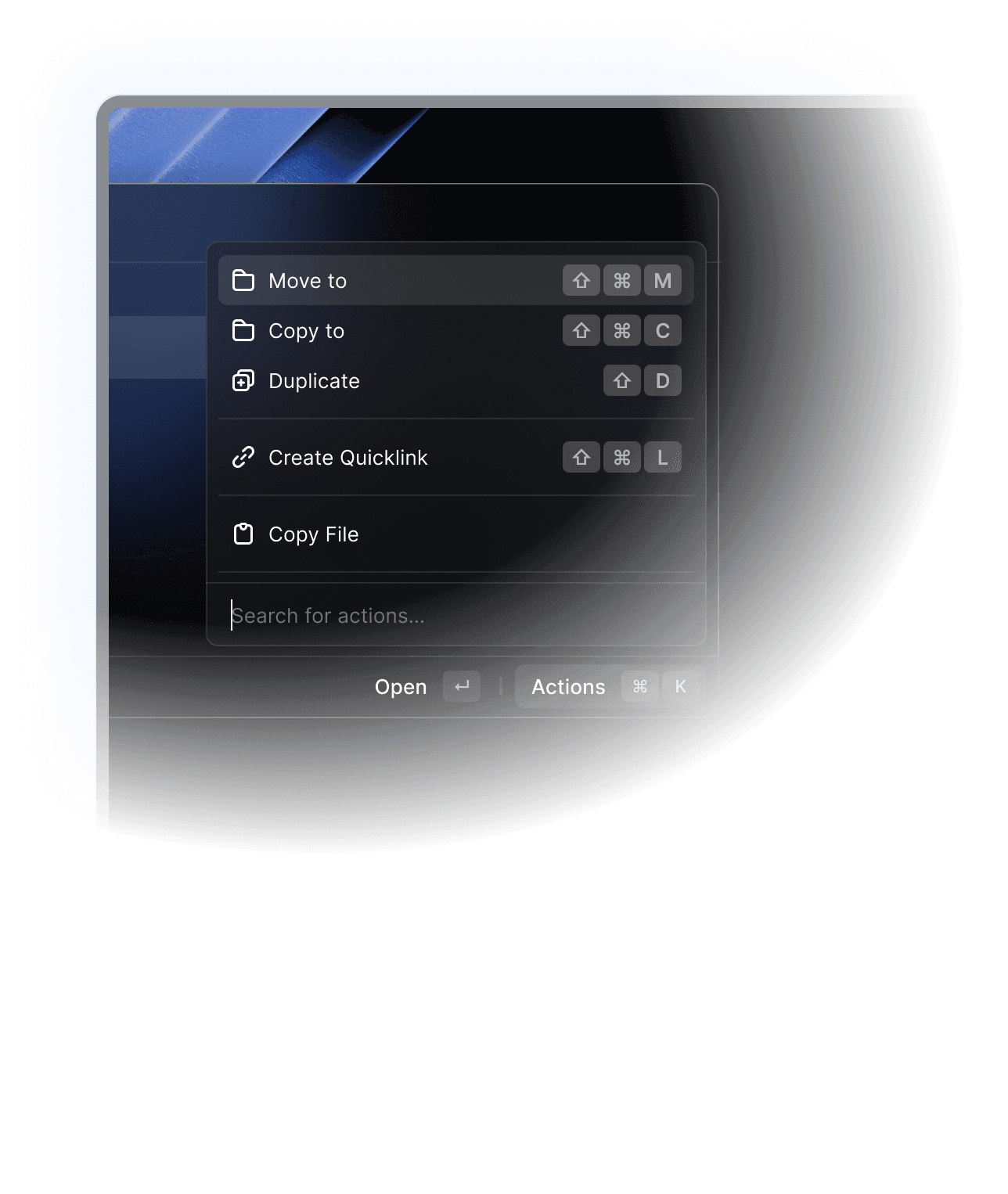 Raycast feels right at home on your Mac and is built with a keyboard-first approach that allows you to navigate the entire interface and use extensions without touching your mouse. You can perform any action with the standardized ⌘K Action menu, helping you stay in the flow.