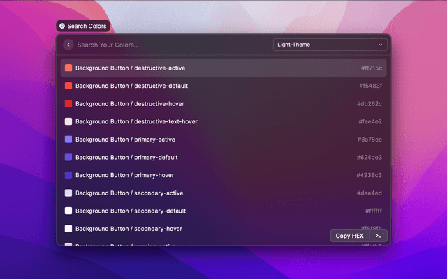 Search all your design tokens and assets, copy and paste them in your favorite tools: Notion pages, Pitch presentations, Slack discussions, etc