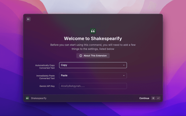 - Paste the API key when asked during the setup process.