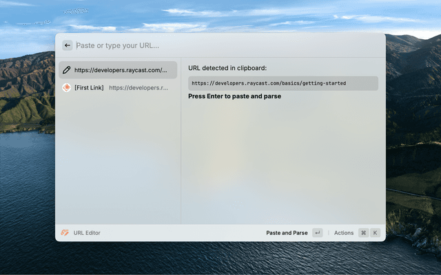 10. Clipboard detection: If a URL is detected in your clipboard, you'll be prompted to parse and edit it. Press Cmd + Enter to fill and parse.