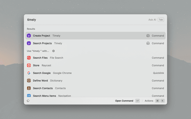 - Open in Browser – Jump to any project in Timely with one keystroke