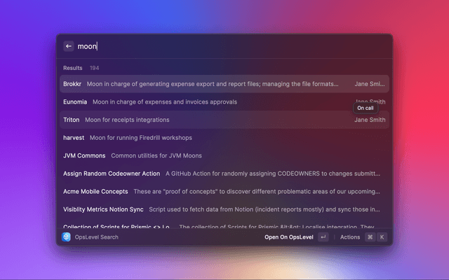 Search OpsLevel services