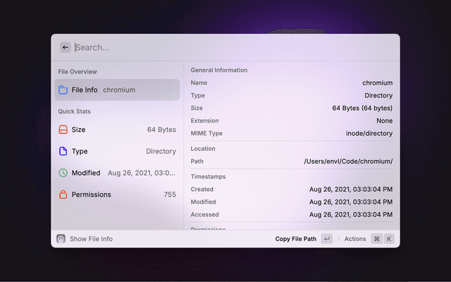 Quickly view metadata of the currently selected file or clear metadata for privacy.