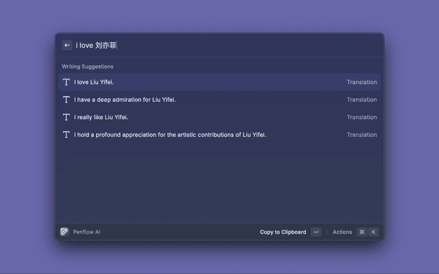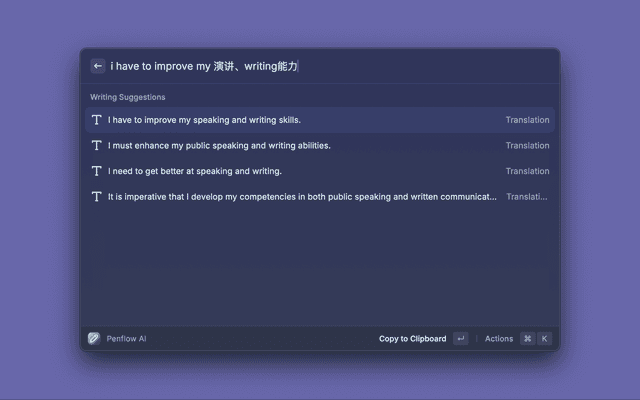 - This tool aims to encourage writing in English, allowing mixed Chinese-English input when needed, while providing completion, translation, and refinement capabilities to lower the barrier of native English writing
