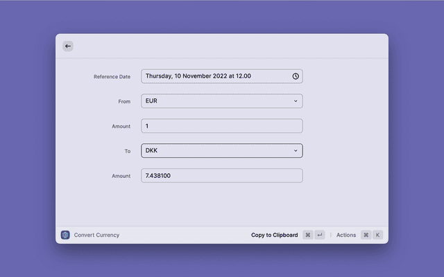 Simple Currency Exchange, uses Exchange Rate API as the data source