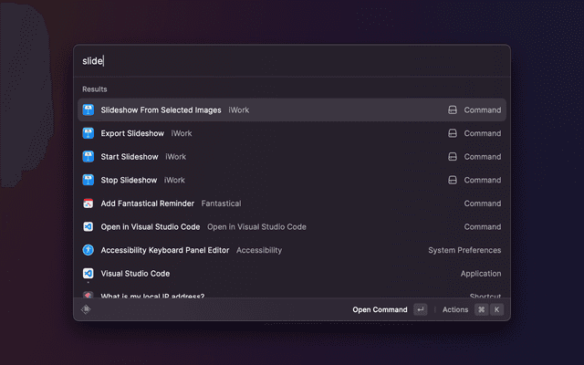This extensions lets you control Pages, Numbers, and Keynote with Raycast.