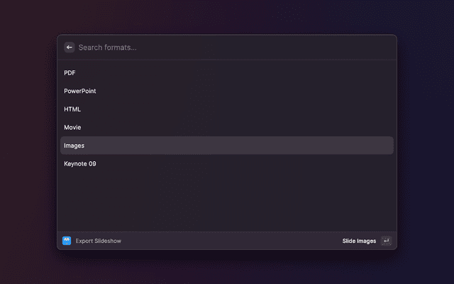 - Export Keynote Slideshow