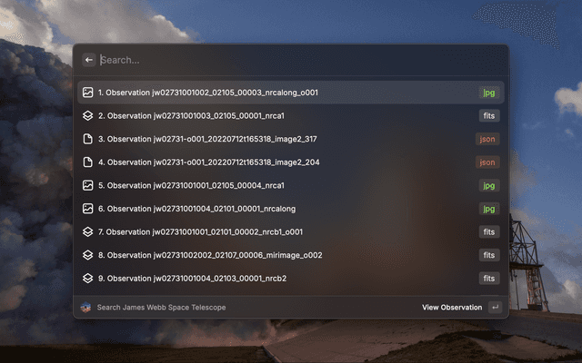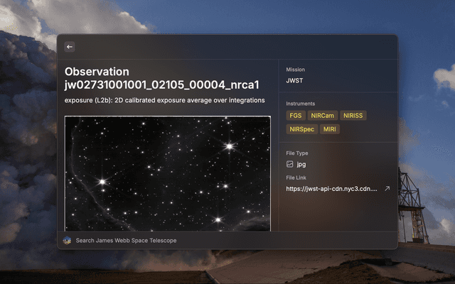 Lists all of the publicly available images and data from James Webb Space Telescope's observations