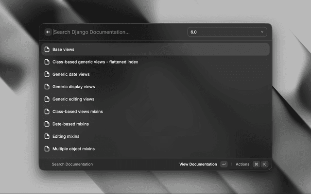 Navigate and search through Django documentation