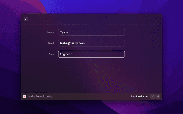 Need to quickly invite someone to your Fastly account? Use the Invite Team Member command to invite a colleague using name, email, and assigning a role.