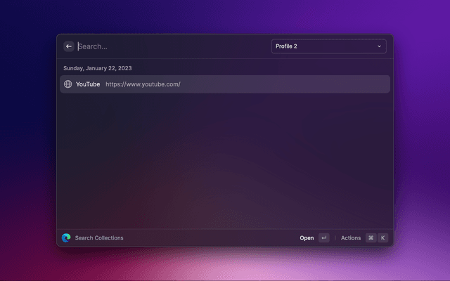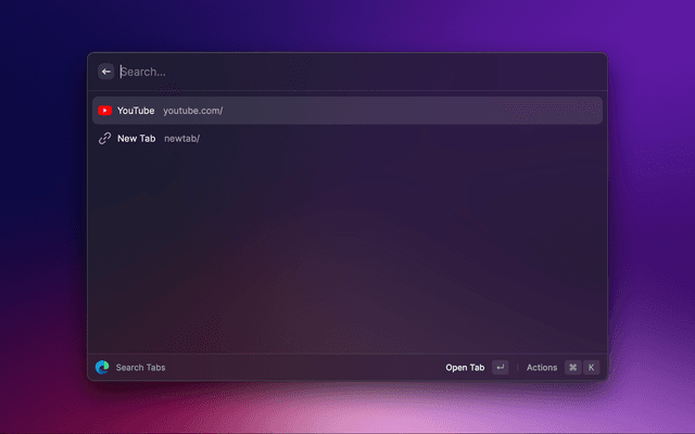 Search open tabs, bookmarks, collections and history in Microsoft Edge.