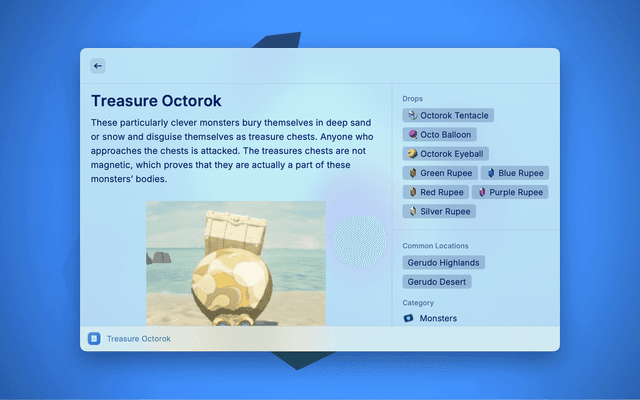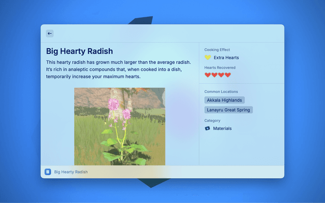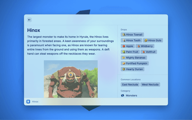 This extension allows you to conveniently search and access information from the BotW Hyrule Compendium.