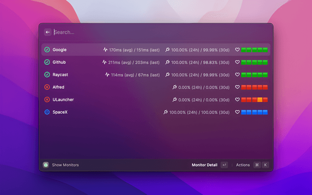 View all your Uptime Kuma monitors and their status from Raycast