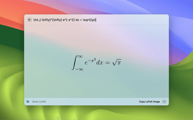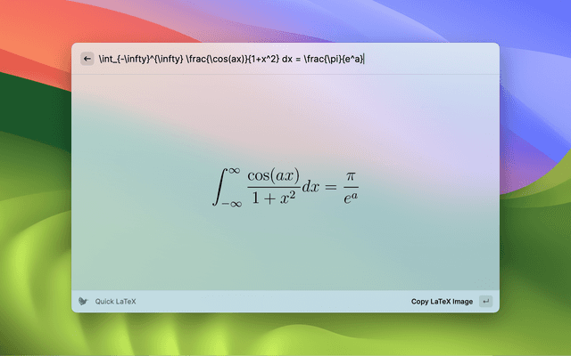 Converts LaTeX text to image. Copy the image to the Clipboard.