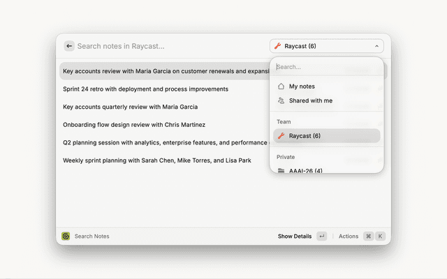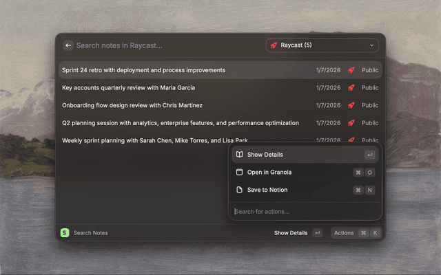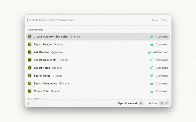 - Open in Granola - Open any note directly in the Granola app with ⌘O