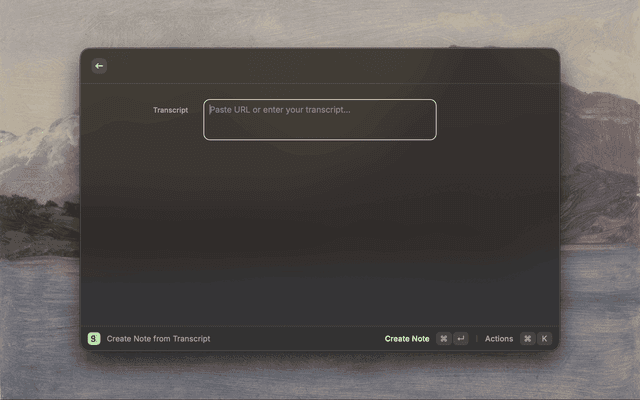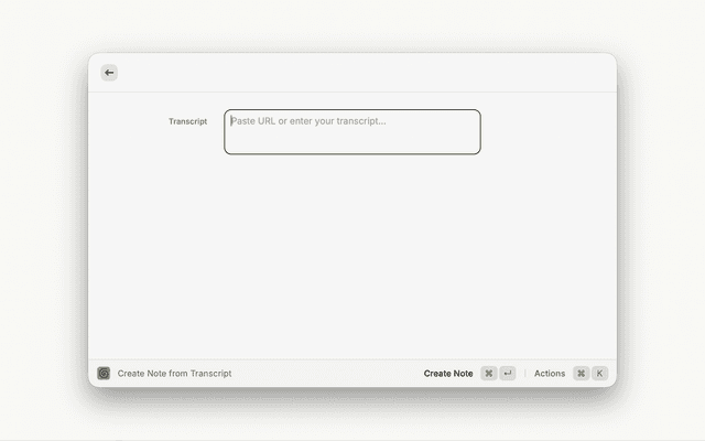 - Create Note from Transcript - Create a new note from text transcripts or YouTube videos with AI-powered summaries