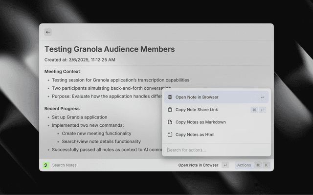 • Open in Granola - Open any note directly in the Granola app with ⌘O