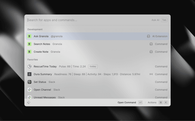 • Recipes - Search and use Granola recipes within Raycast AI