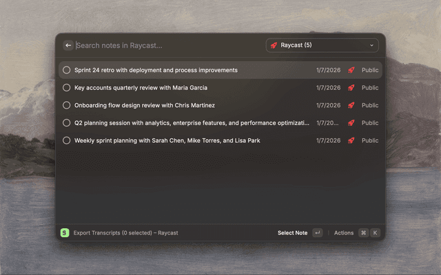 - Export Transcripts - Select multiple notes and export their transcripts in bulk with folder-aware filtering