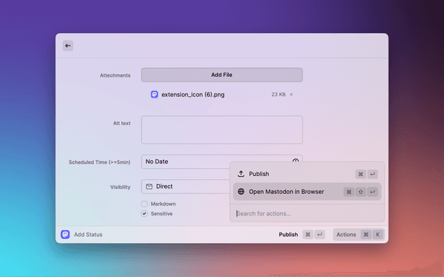Toggle the "Sensitive" checkbox to mark the attached image as sensitive, or add a content warning to the status.
