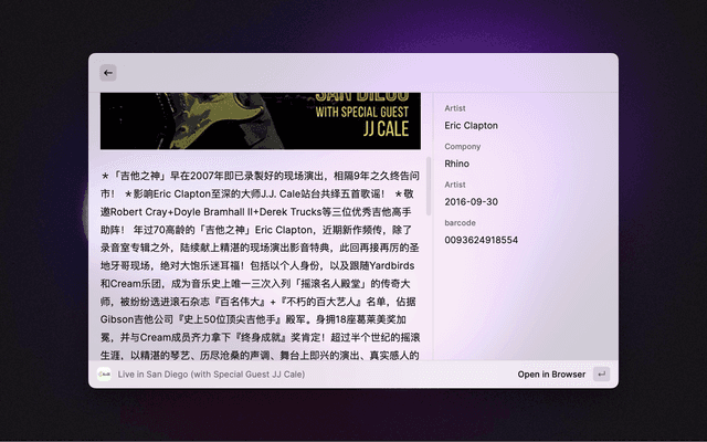 This extension seamlessly integrates Raycast and NeoDB, allowing you to easily search NeoDB items and view item details directly within Raycast.