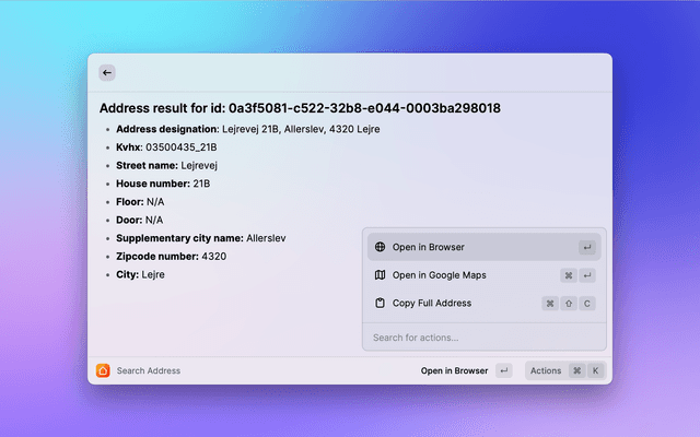 Denmark's addresses Web API (DAWA) exhibits data and functionality regarding Denmark's addresses.