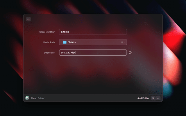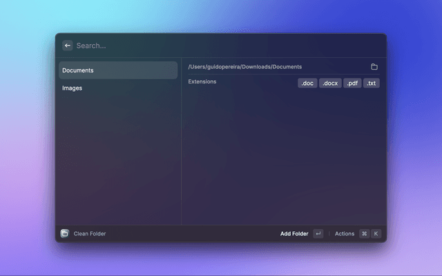 Folder Cleaner is a Raycast extension that allows users to automatically clean a specific folder. It can filter by file extension and move those files to their appropriate location.