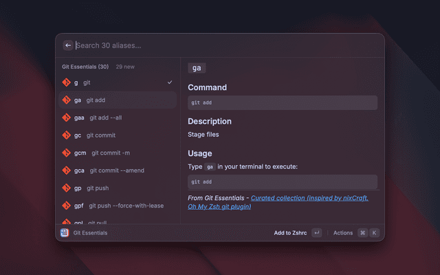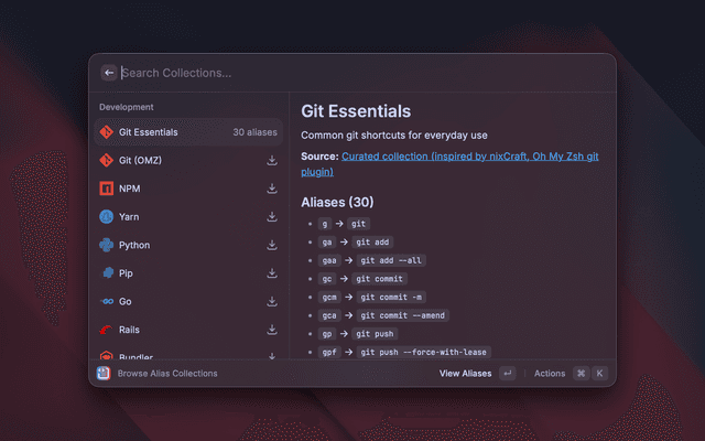 View, organize, and edit your shell aliases, exports, functions, and more with an intuitive interface.