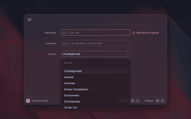 🖥️Alias ManagementBrowse, add, edit, and search aliases organized by sections with full validation