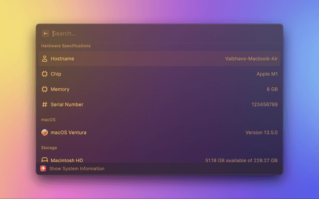 Get quick access to your system information so that you never have to open System Settings! You can access the following: