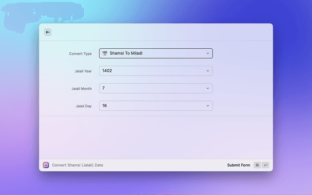 Converts Shamsi (Jalali) calendar dates to/from Gregorian calendar