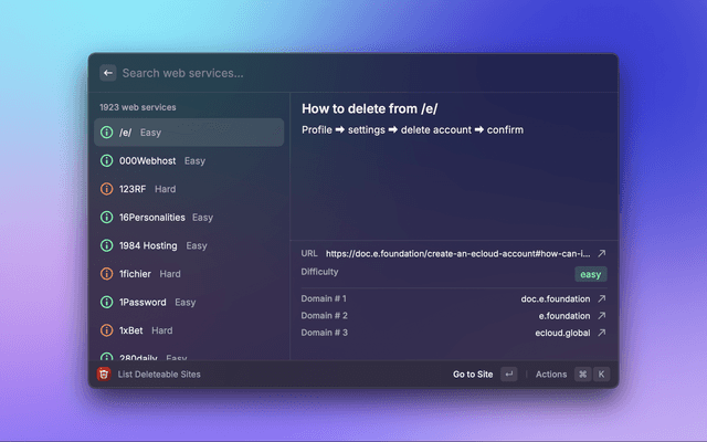 A directory of direct links to delete your account from web services.