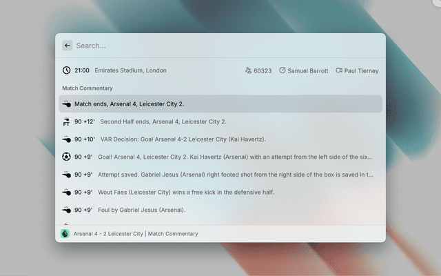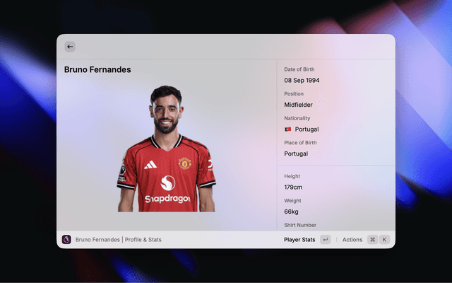 Get instant access to Premier League data right from your Raycast menu. Easily search for teams, players, fixtures, results, standings and awards.