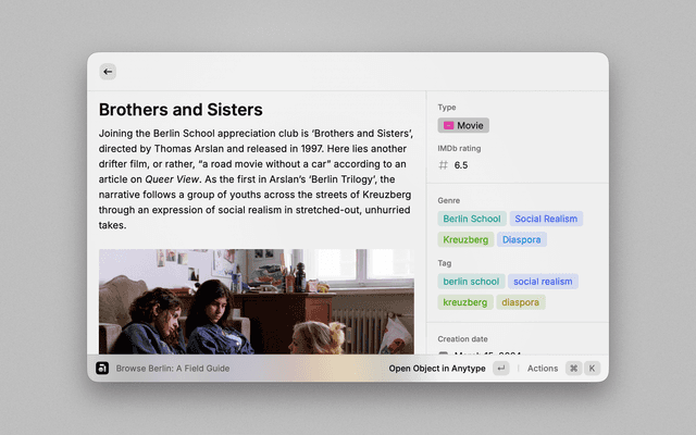 Create, browse, search and edit within Anytype - right at your fingertips, anywhere on your Mac.