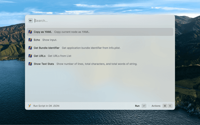 Run custom scripts with pasteboard content as the input or with specified input in OK JSON.