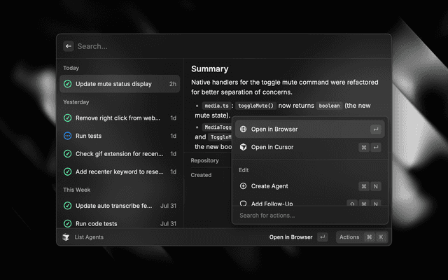 An extension that allows you to launch and manage Cursor agents from anywhere.