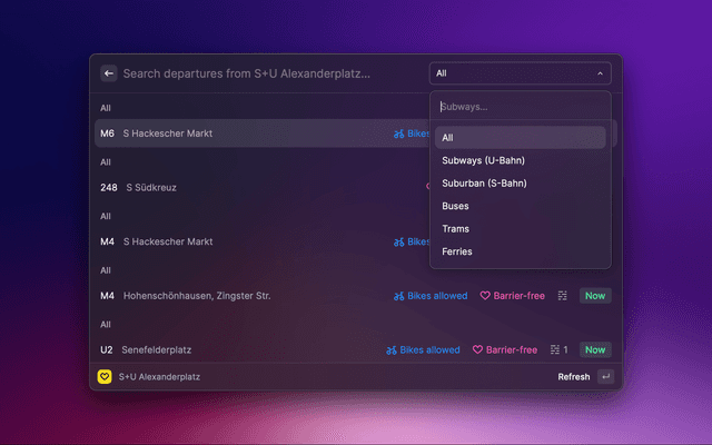 Departures for public transport in Berlin based on BVG real-time traffic data