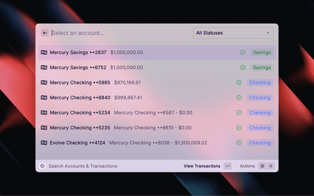 Quickly access your Mercury accounts and transactions directly from Raycast.