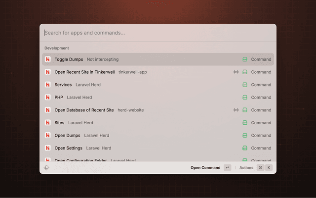Provides quick access to Laravel Herd features and settings.