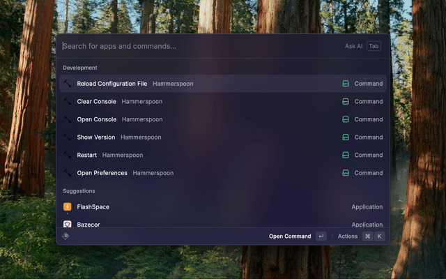 Control 🔨 Hammerspoon directly from Raycast.