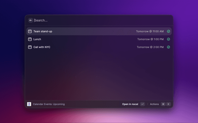 Search notes and manage your day from Raycast with nocal.