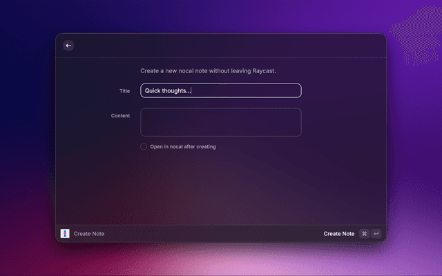 - Create Note — Quickly capture a new note from Raycast.