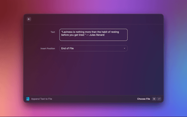 Append quick ideas, quotes, and notes to your text files without leaving your current context.