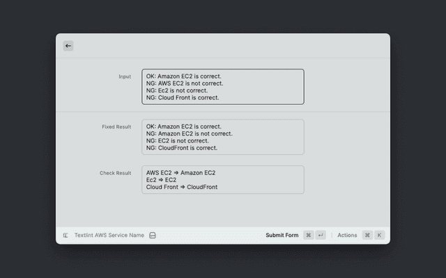 Checks that the text does not contain typos in the AWS service name. Correct the service name at the same time.