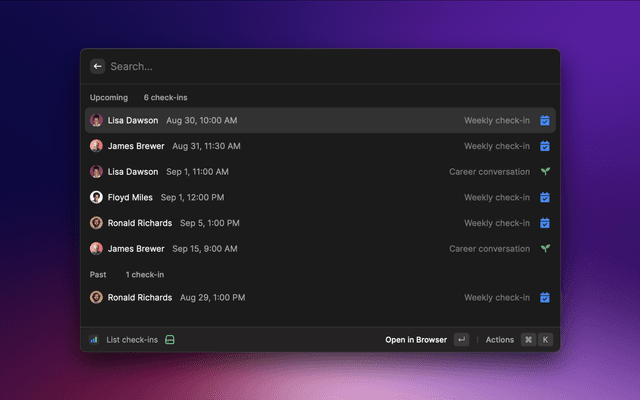 A Raycast extension to list upcoming and past check-ins in Ready.