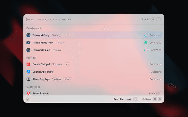 Preview Trim uses a Raycast view command to show the original input and trimmed output, inspired by the selection-preview pattern used in Raycast's JSON Format extension.