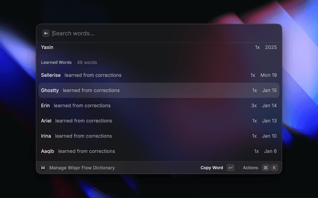 Wispr Flow Dictionary