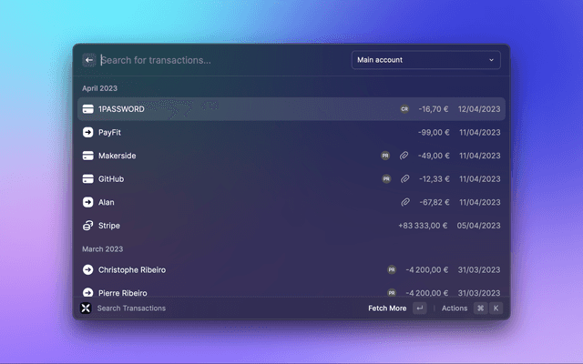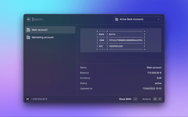 Access, search and download your Qonto bank data quickly from Raycast.