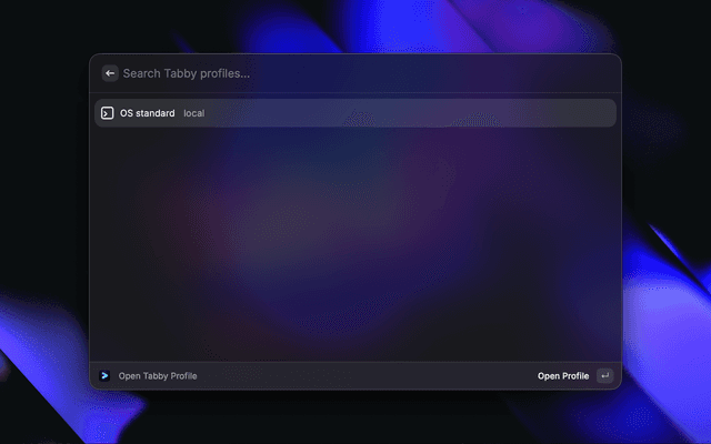 Tabby stores its configuration in ~/Library/Application Support/tabby/config.yaml. The extension reads profiles from this file automatically.