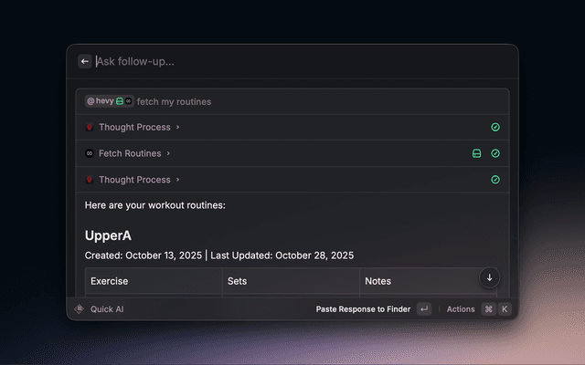 Your Hevy workout data at your fingertips via Raycast.